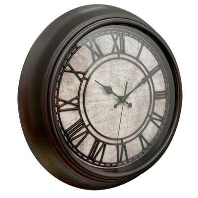 Westclox MAP WITH RAISED NUMBERS 14" Round Raised Roman Numerals Antique Oil-Rub Bronze Finish Vintage Map Dial Glass Lens