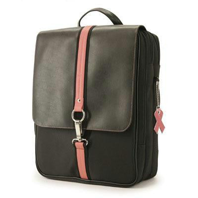 Mobile Edge - 16" Komen Paris Backpack - Black w/Pink. Mobile Edge donates 10 percent from the sale of each case to the Susan G. Komen breast cancer foundation. This Komen Paris backpack combines the best of today's stylish fashion materials, fittings and trim with the functionality, organization and comfort that only a backpack can offer. Dedicated SafetyCell computer protection compartment. Ventilated padded rear panel with ergonomic shoulder straps for superior carrying comfort. Additional workstation section for accessories, cables, pens, etc. Separate section for files, books and magazines. Removable accessories/cosmetic pouch. Holds computers with up to 15" and 15.4" screens.