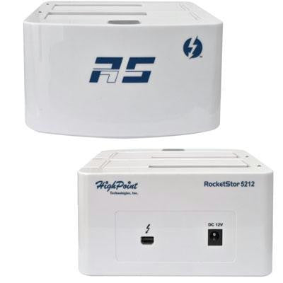HighPoint's RocketStor 5212 is the industry's first dual-bay Thunderbolt powered Storage Dock! The uncompromised 10Gb/s transfer bandwidth is ideal for performance-intensive storage applications including media editing, HD video playback, and high-speed external backup. The RocketStor 5212 can be used with any Thunderbolt capable Mac platform. Key Features: 10Gb/s Thunderbolt Storage Dock, 3.5" & 2.5" Drive form factor Compliant, Maximizes SATA 6G Performance over Thunderbolt connectivity.