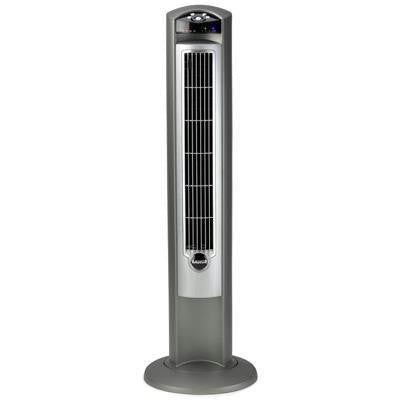 The 42" Wind Curve Platinum Fan with Remote Control and Fresh Air Ionizer is a top performer. This tall, gracefully sleek fan complements your decor while adding cooling comfort to home or office. With three speed settings, and a wide-area oscillation feature, it efficiently provides a gentle breeze throughout a room. Loaded with convenient features, the fan includes a multifunction remote control that stores in a recess in the back, a fresh air ionizer, adjustable louvers in the front grill to control the direction of the air stream, a 7-1/2-hour energy-saving timer, and an easy-carry handle for portability. FEATURES: High-Reaching Tower Design for Maximum Air Delivery; Sophisticated Wind Curve Profile Fresh Air Ionizer Option; Convenient Electronic Timer Set from 0.5 - 7.5 Hours; Three Quiet Speeds; Multi-Functional Remote Control; ETL/cETL Listed.