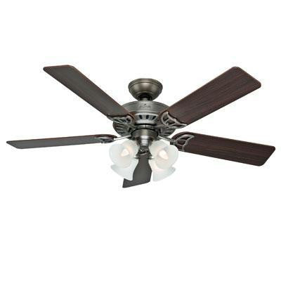 Studio Series - 52" Ceiling Fan - Five Reversible Medium Oak/Walnut blades; WhisperWind Motor; 3-positiion mounting system; uses three candelabra bulbs (included). Frosted scalloped glass. Each bulb is 40 watts .