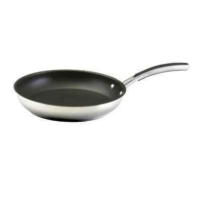 Millennium Stainless Steel 12" Skillet... One of the most used pans in any well-equipped kitchen. Skillets have sloped sides so that foods slide out easily. This large size is ideal for cooking omelets, pancakes, quesadillas, sauteing vegetables, searing steaks, fish and poultry. The nonstick surface makes cleanup effortless. Silicone enhanced stainless steel handles are riveted securely to the pan and comfortable to hold - oven safe to 400 degrees F; Sleek, contemporary styling, polished stainless steel construction, and see-through glass lids combine to create beautiful, durable cookware that will last for years; An 18/0 stainless protector surrounds the thick aluminum base, providing perfect heat distribution across the bottom of the pan and suitability for induction stovetops; Dishwasher safe.